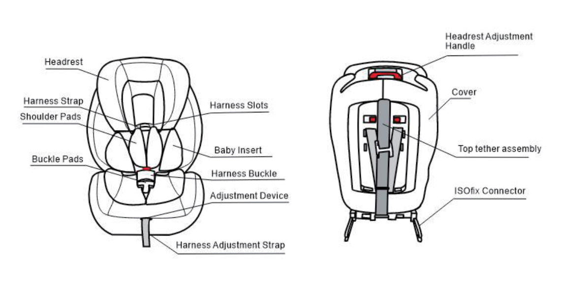 - utrustad med ett höjdjusterbart nackstöd, som kan justeras flexibelt när barnet växer för att säkerställa att huvudet alltid är i bästa skyddsposition.